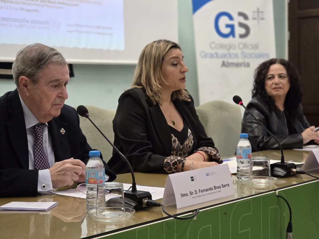El acto de apertura ha estado presidido por la Diputada de Recursos Humanos y Contratación de la Excma. Diputación Provincial de Almería, Dª María del Mar López Asensio, por la Presidenta del Ilustre Colegio Oficial de Graduados Sociales de Almería, Dª María del Mar Ayala Andújar y elIlmo. Sr. D. Fernando Brea Serra, Fiscal, Profesor Tutor de la UNED y Colegiado de Honor de este Colegio Oficial.