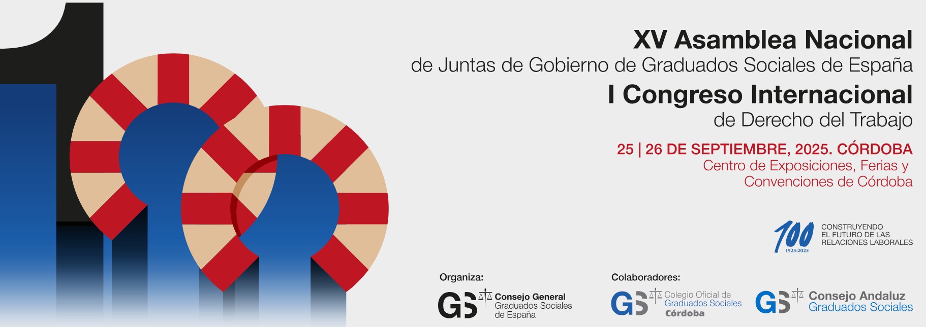 La ciudad de Córdoba acogerá los próximos 25 y 26 de septiembre la XV Asamblea Nacional de Juntas de Gobierno de Graduados Sociales de España y el I Congreso Internacional de Derecho del Trabajo, dos citas históricas para la profesión que se celebran en pleno Centenario de la creación de la figura del Graduado Social (1925–2025). Ambos encuentros, impulsados por el Consejo Andaluz de Colegios Oficiales de Graduados Sociales y organizados por el Colegio de Córdoba, convertirán a Andalucía en centro neurálgico del debate jurídico-laboral a nivel nacional e internacional.
