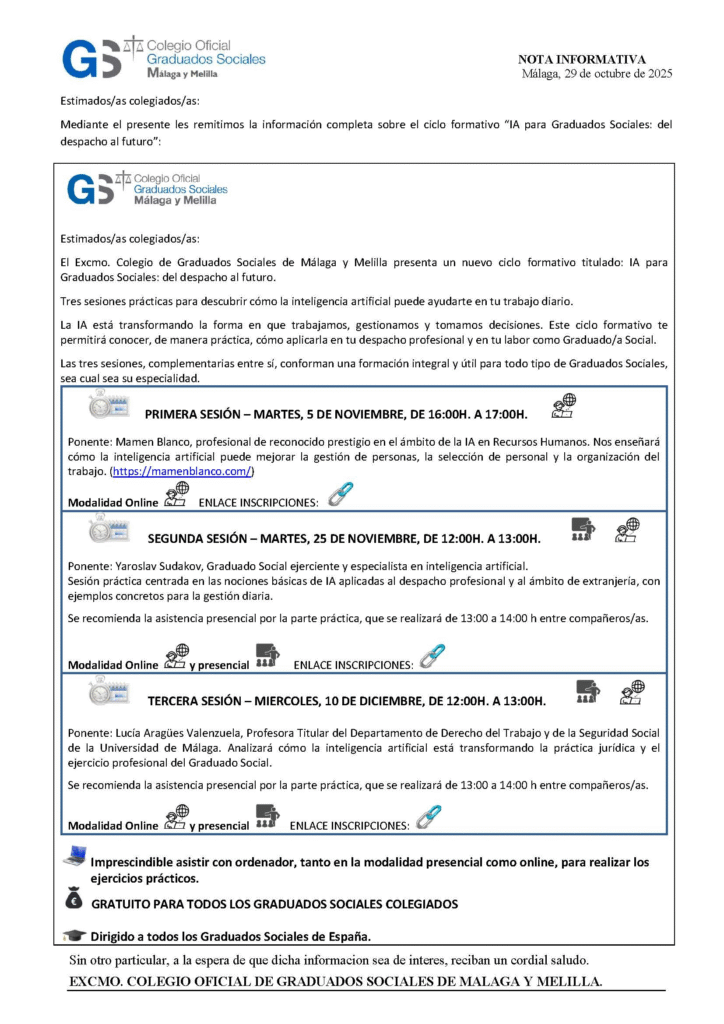 PRIMERA SESION: https://graduadosociales.us11.list-manage.com/track/click?u=9c45bf33b7d0378d904f50057&id=a3bbe1ba86&e=1f2daad033